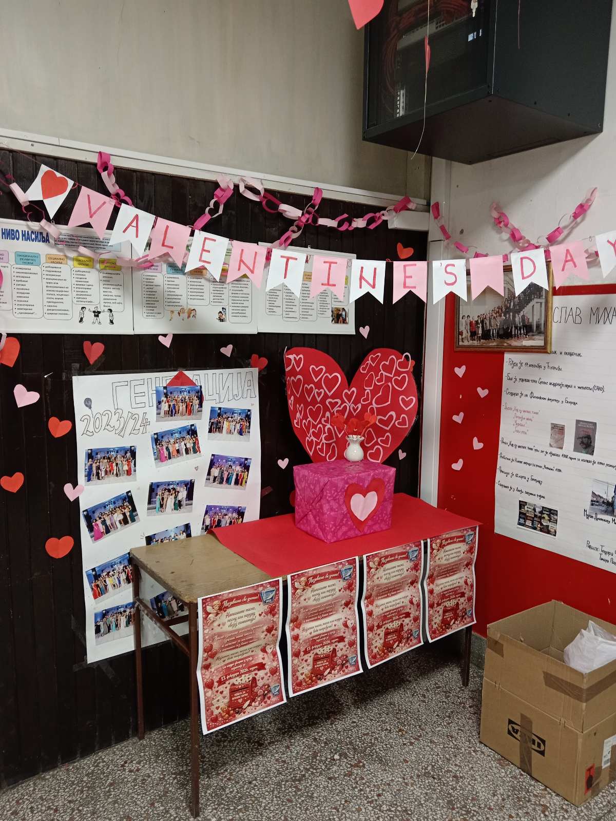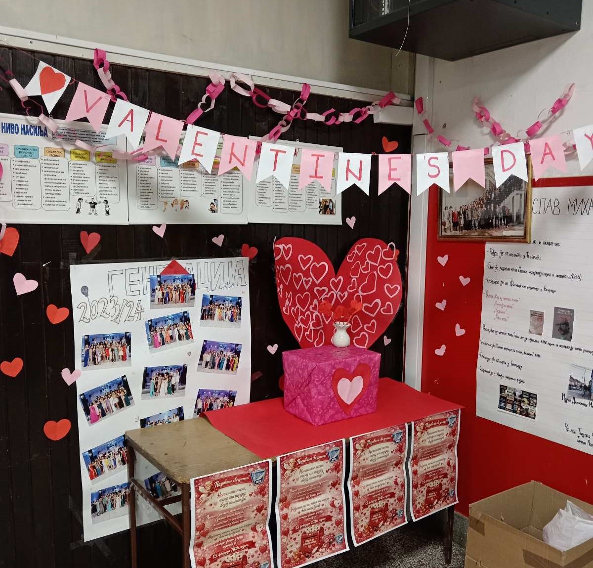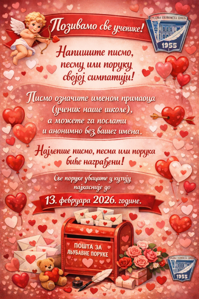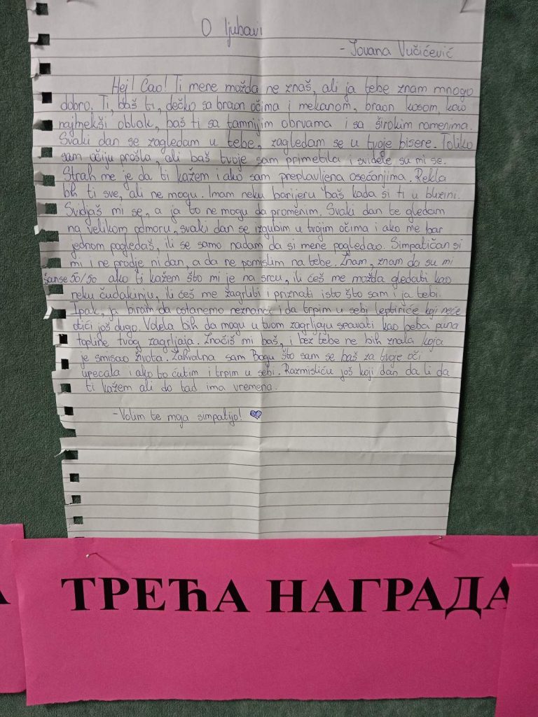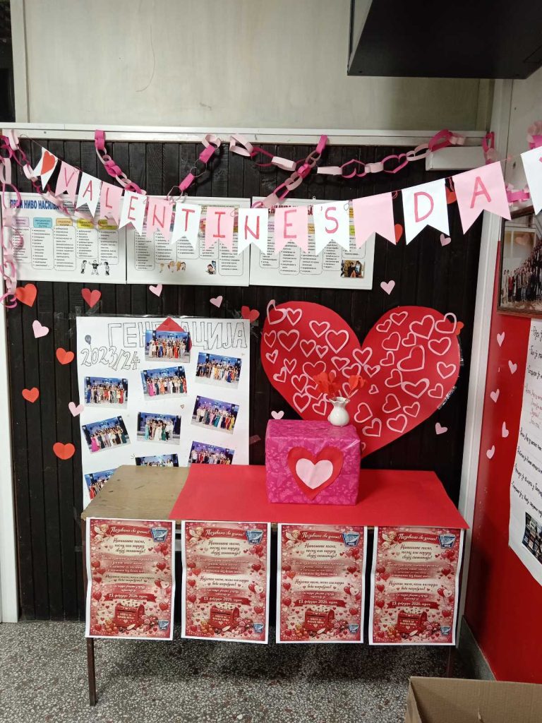У оквиру акције „Дан заљубљених“, ученици су имали прилику да на посебан и креативан начин искажу своја осећања. Током протеклих дана, у кутију су убацивали писма, поруке и песме намењене својим симпатијама — пуне лепих речи, искрених емоција и храбрости да се осећања поделе.